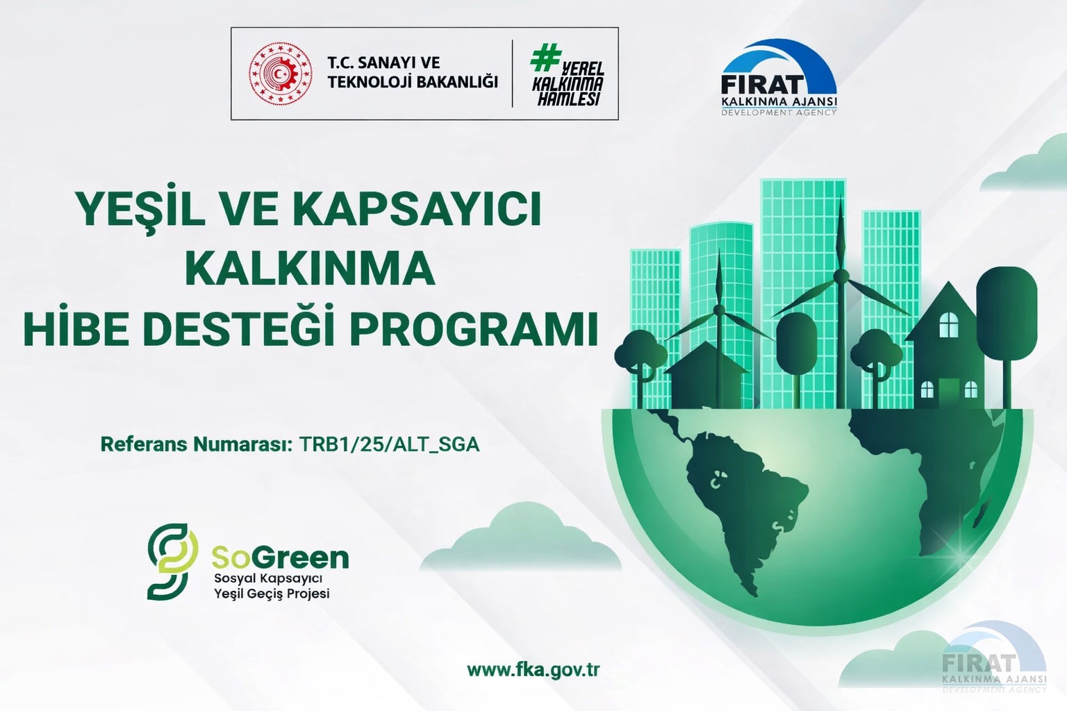 Sanayi ve Teknoloji Bakanlığı Kalkınma Ajansları Genel Müdürlüğü koordinasyonunda faaliyetlerini yürüten Fırat Kalkınma Ajansı (FKA) tarafından 03 Temmuz 2025 tarihinde ilan edilen “Yeşil ve Kapsayıcı Kalkınma Hibe Desteği Programı” kapsamında sunulan projelerin değerlendirme süreci tamamlanmış olup başarılı bulunarak destek alamaya hak kazananların listesi 26 Aralık 2025 tarihinde ilan edilmiştir.